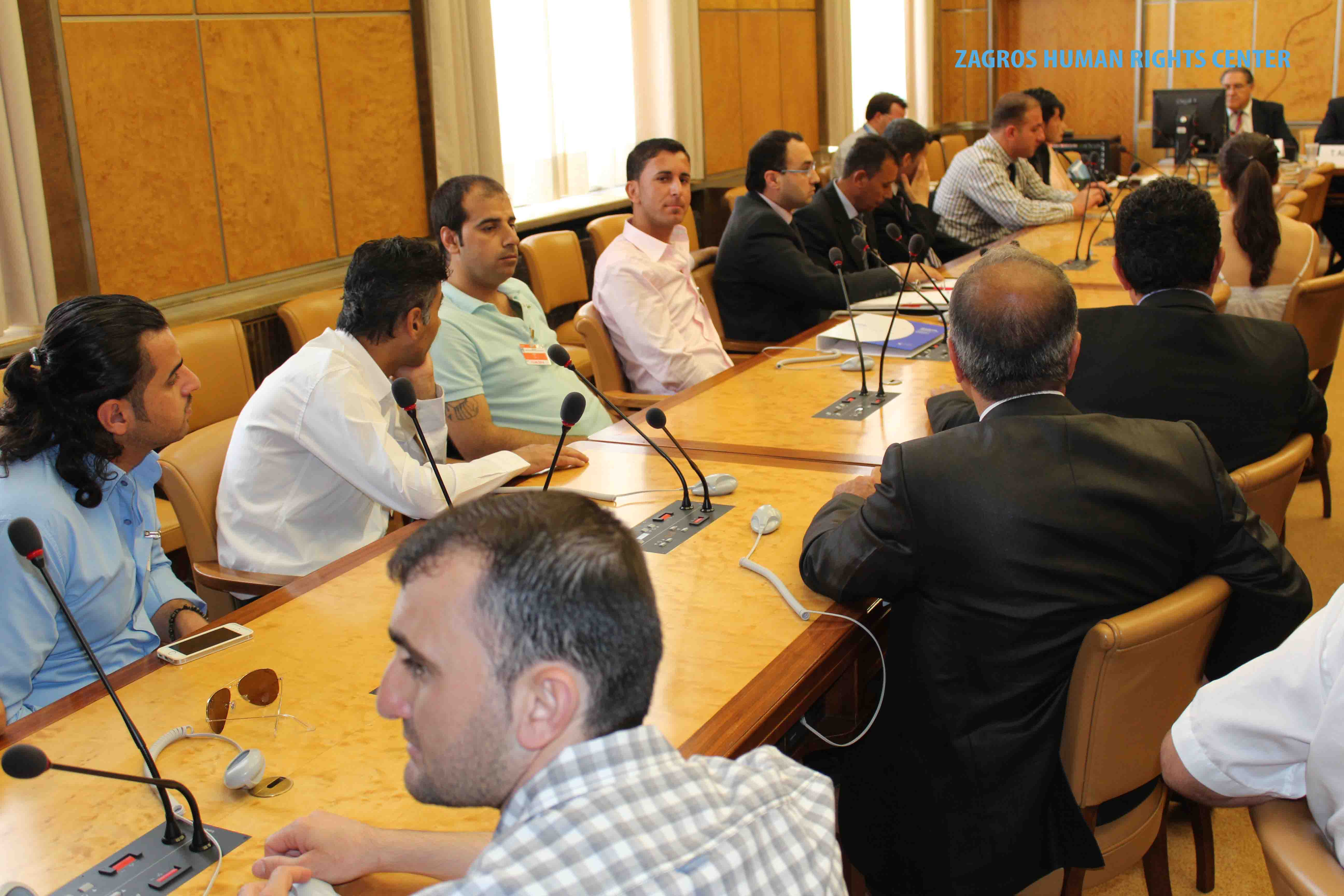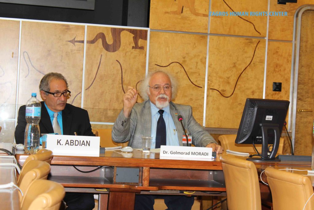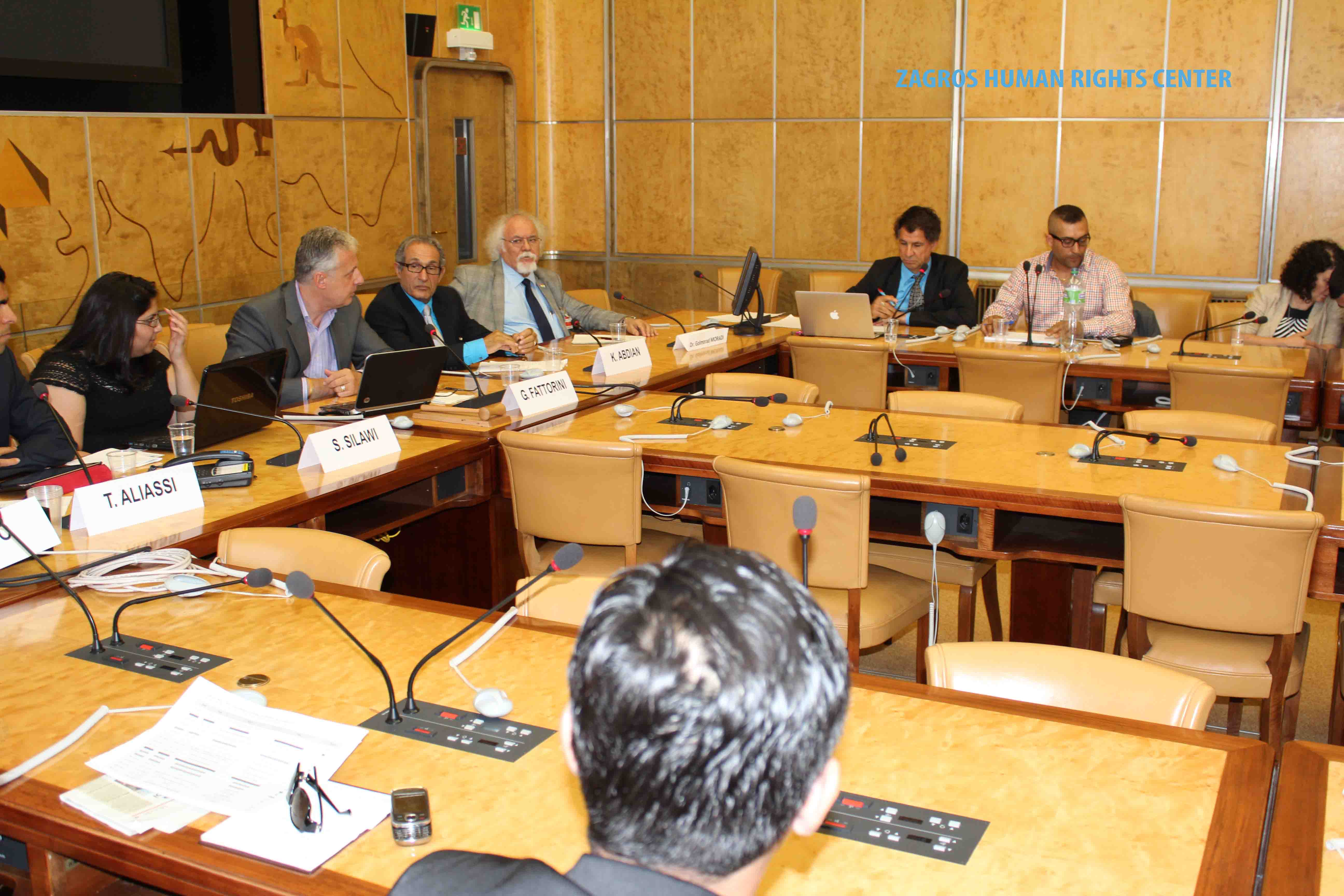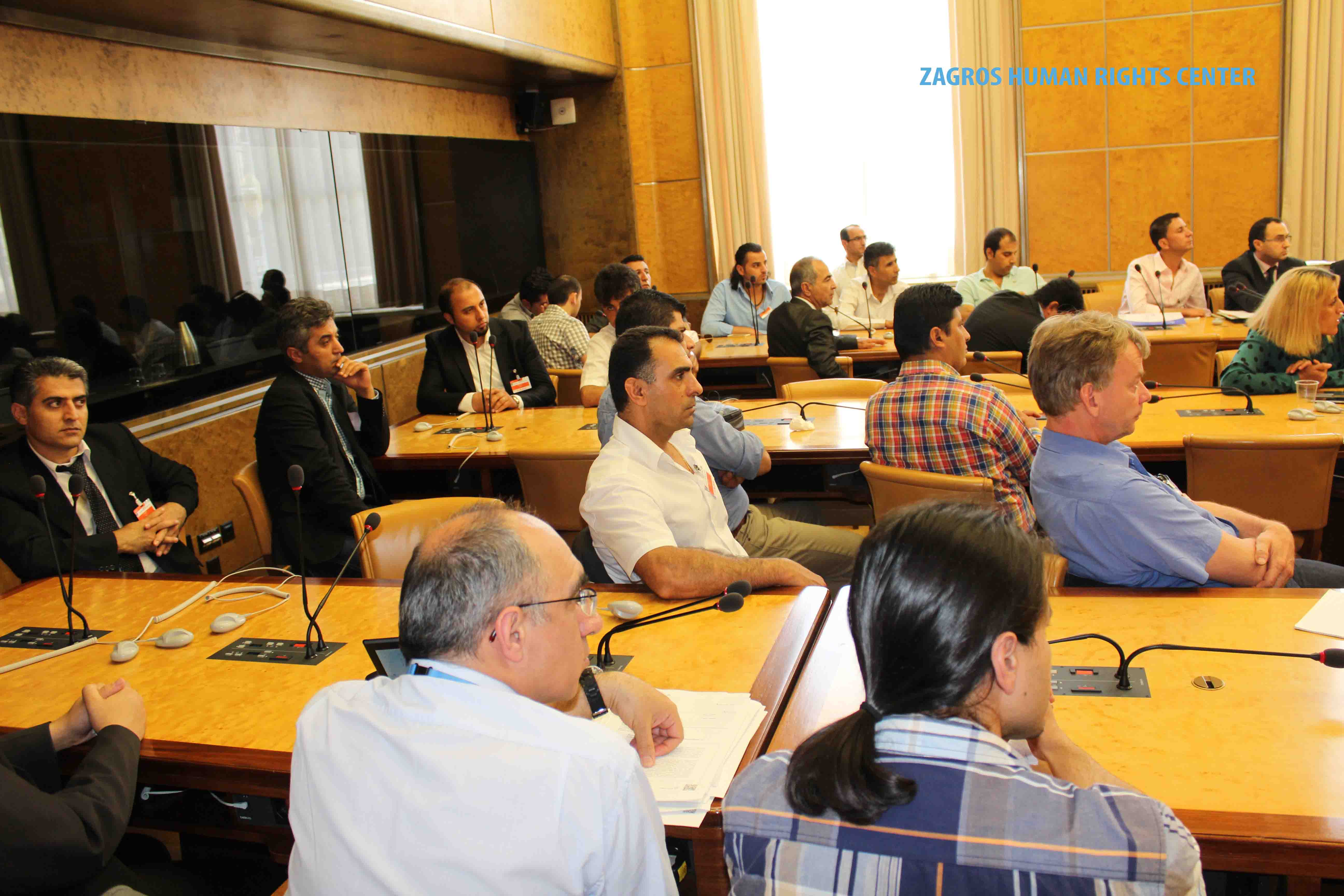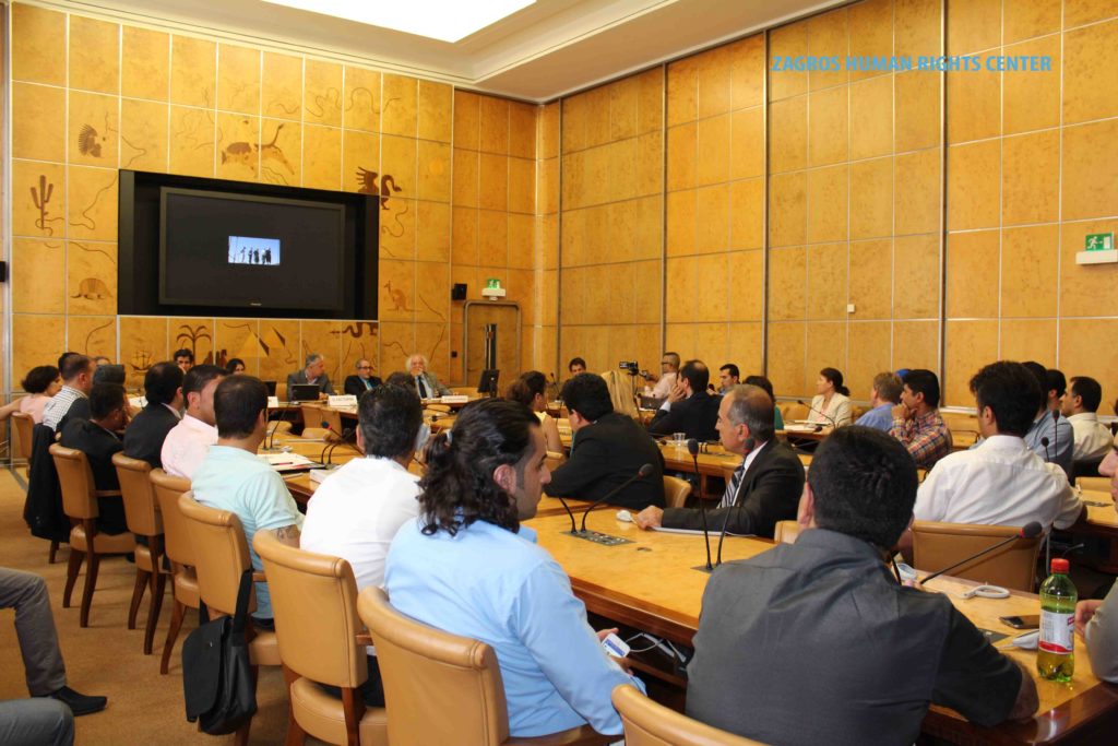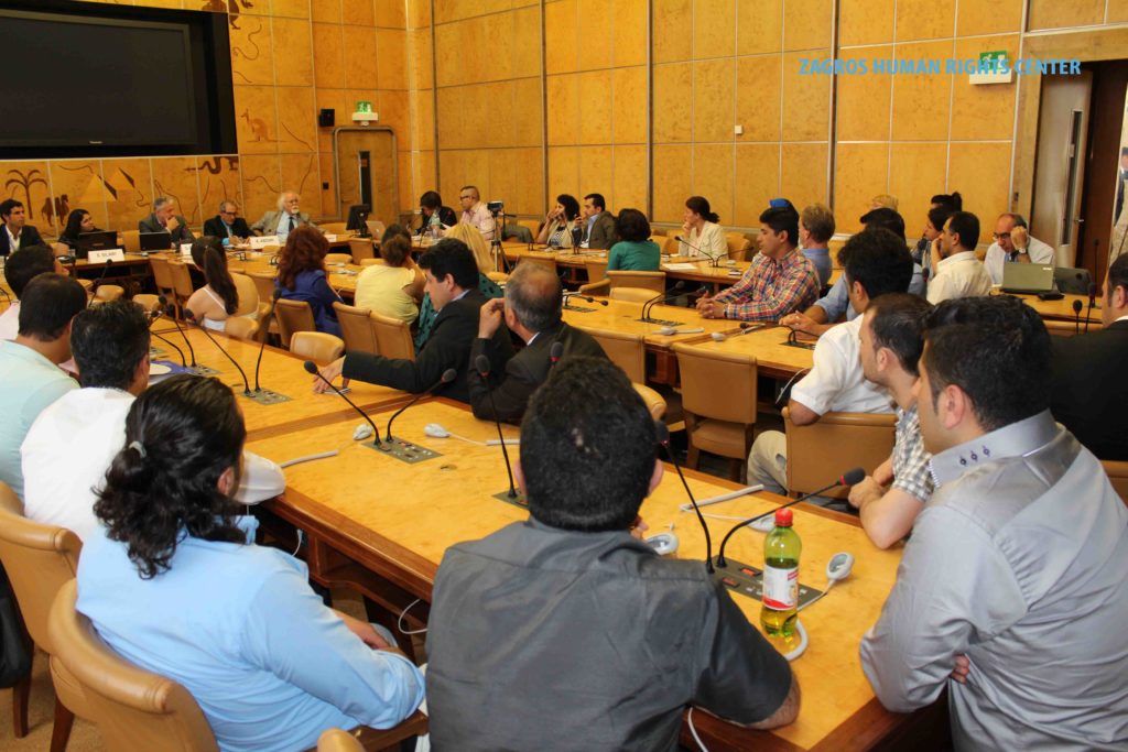 This Side-event has been organized by ZHRC – Zagros Human Rights Center and MRAP Organization (The Movement againsit of Racism and for the Friendship among the Peoples), for discussion the situation of human rights of national and religious minorities, such as Azari, Blotch, Turkmen, Kurds, Arabs and also the religious minorities such sunni muslim, Derawish Gonabadi, Yarsans, Bahais and other religious minorities in Iran.