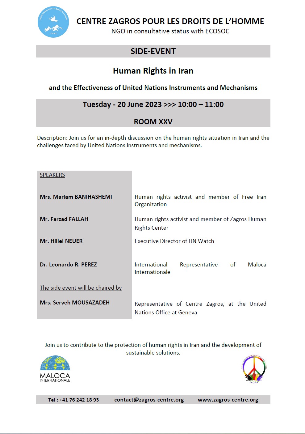 Within the framework of the 53rd session of the Human Rights Council, we will organize a panel on the human rights situation in Iran.