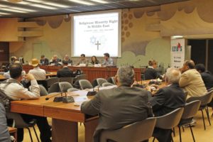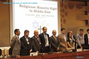 لە کۆنفرانسێکی دیکەدا کە ڕۆژی دوانزەی مانگ لە ژێر ناوی ”مافەکانی مرۆڤ و کەمایەتییە ئایینیەکانی ڕۆژهەڵاتی ناوین” بەڕيوە چوو، نوێنەرانێک لە کەمایەتیە ئایینیەکانی ناوچەکە؛ ئێزیدی، بەهایی، کریستیەن، عەلەوی، باسێکیان سەبارەت بە بارودۆخی پەیڕەوانی ئایینەکەیان لە هەر کام لە وڵاتانی ئێران، ئێراق، سوریە، لوبنان و چەند وڵاتێکی دیکەی ناوچەکە پێشکەش کرد. لەو کۆنفرانسەدا دکتور محمەد قادر محەمەد هاودیانی وەزیری کار و کاروباری کۆمەڵایەتی هەریمی کوردستان، بەشدار بوو و بابەتێکی تێر و تەسەلی سەبارەت بە بارودۆخی کەمایەتیەکان لە هەریمی کوردستان و عێراق پێشکەش کرد. ناوبراو لە قسەکانیدا داوای پشتگری زیاتری بۆ هەریمی کوردستان وەکو تەنیا هەریمی پارێزەری کەمایەتیەکان لە ناوچەی ڕۆژهەڵاتی نێوەڕاست کرد. هەر وەها بەڕێز ئەمیر سڵێوە دۆخی مەسێحیەکانی عێراق و هەریمی کوردستانی شی کردەوە. لە دواییدا نوێنەری عێراق لە نەتەوە یەکگرتووەکان بارو دۆخی کەمایەتیە ئایینیەکانی لەو وڵاتە خستە بەر باس و ڕەخنەی ئاراستەی ئێزیدیەکان کرد بە هۆی ڕەخنەکردنی حکوومەتی ناوەندی بە نەپاراستنیان لە بەرامبەر کۆمەڵکۆژی دا. لە کۆتاییدا پەیامێک ئاراستەی سەرۆکایەتی شۆرای مافەکانی مرۆڤ کرا بۆ بە دواداچوونی زیاتری بارودۆخی کەمایەتییە ئایینیەکان و کاراترکردنی سیستمی پاراستنیان.