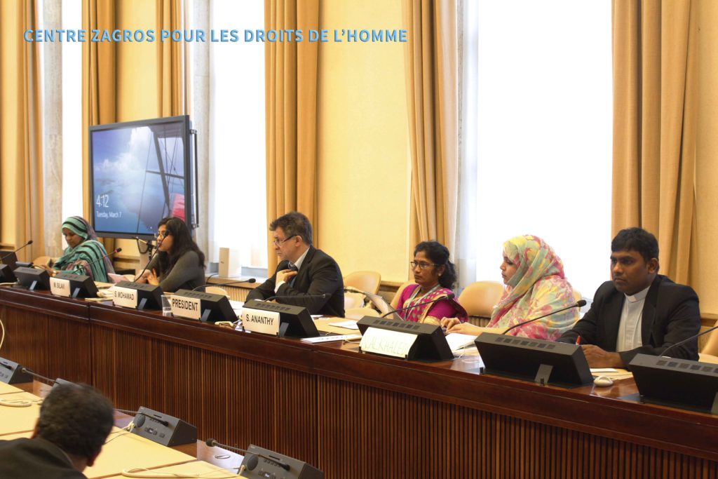 ڕۆژی ٧ی مارس (ئازار)ی ٢٠١٧، هاوکات لە گەڵ ٣٤هەمین خۆلی کۆبوونەوەکانی شۆرای مافەکانی مرۆڤ، کۆنفرانسێک لە ژێر ناوی”مافەکانی ژنان لە ژێر داگیرکاری نیزامیدا” لە بنکەی سەرەکی نەتەوە یەکگرتووەکان لە ژنێڤ بەڕێوەچوو.