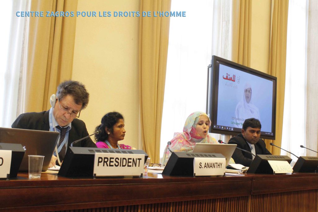 ڕۆژی ٧ی مارس (ئازار)ی ٢٠١٧، هاوکات لە گەڵ ٣٤هەمین خۆلی کۆبوونەوەکانی شۆرای مافەکانی مرۆڤ، کۆنفرانسێک لە ژێر ناوی”مافەکانی ژنان لە ژێر داگیرکاری نیزامیدا” لە بنکەی سەرەکی نەتەوە یەکگرتووەکان لە ژنێڤ بەڕێوەچوو.